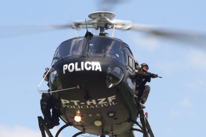 Viaturas e o helicóptero do SAER da Polícia Civil, auxiliaram nas Buscas