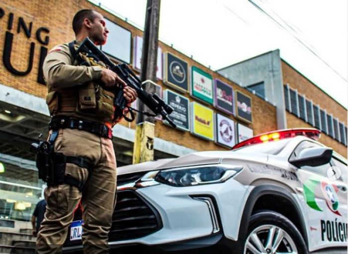 A ação foi na lotérica que fica no shopping Unisul, e chamou a atenção pela ousadia dos bandidos que atiraram na porta de vidro para poder realizar o roubo.