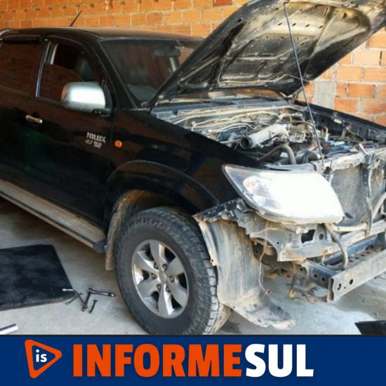 que se tratava da caminhonete MMC/L200 Triton 3.2 D, Toyota Hilux SW4 SRV4X4, de cor preta de Içara, setratava do veículo I/Toyota Hilux CD4X2 SR, de Balneário Gaivota, com registro de furto.