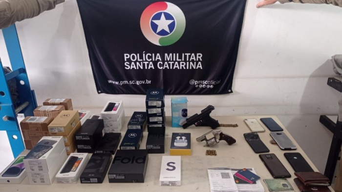 A Polícia Militar (PM) recuperou 30 celulares roubados em uma loja na tarde dessa quarta-feira, dia 19, em Imbituba. Os aparelhos estão avaliados em R$ 65 mil. Cinco homens foram presos pelos militares. Além disso, duas armas de fogo e 17 munições foram apreendidas.