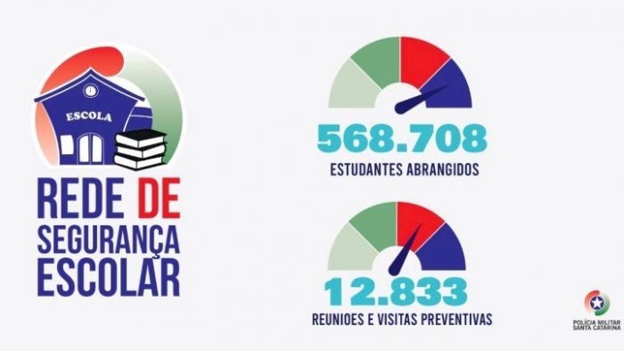 Rede de Segurança Escolar - A Rede de Segurança Escolar é um programa institucional da PMSC, que desenvolve ações junto à comunidade escolar, prestando serviços de apoio e de consultoria de segurança escolar, de assessoramento e atendimento. Em 2021 o programa abrangeu 568.708 alunos e realizou 12.833 reuniões e visitas preventivas.