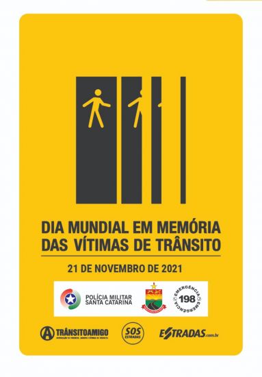 Assim a Polícia Militar de Santa Catarina (PMSC), através da Polícia Militar Rodoviária (PMRv), fará na semana que antecede o dia 21 de novembro uma campanha de conscientização em favor ao Dia Mundial em Memória das Vítimas de Acidentes de Trânsito, que foi criada com a intenção de homenagear não só as pessoas que morreram em decorrência dessas fatalidades, mas também familiares, amigos, equipes de emergência, policiais, enfermeiros e médicos que lidam diariamente com as consequências traumáticas das mortes e lesões no trânsito.