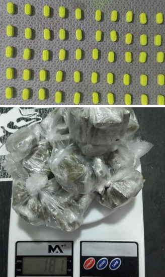 Durante a operação, foram realizadas buscas minuciosas no condomínio com o auxílio dos cães de faro K9, GAM e DIAMANTE. Durante uma varredura em um dos terraços, os cães localizaram 50 comprimidos de ecstasy e 181 gramas de uma substância análoga à maconha. Os entorpecentes estavam fracionados e embalados, prontos para serem comercializados.