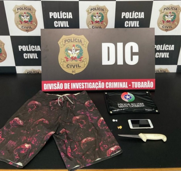 A Polícia Civil pediu a prisão preventiva dos dois suspeitos e mandado de busca e apreensão a ser cumprido em suas casas. Na manhã de hoje, os policiais civis e militares cumpriram às ordens judiciais. Conforme os agentes, um dos suspeitos já estava preso por crime relacionado à violência doméstica e o outro foi preso em casa e conduzido ao Presídio Regional de Tubarão. Na casa dos suspeitos, os policiais apreenderam a bermuda e a faca utilizadas no crime e duas buchas de cocaína.