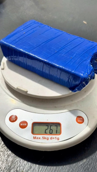 Com o auxílio do cão policial Maxx, os policiais realizaram buscas na região e encontraram 267 gramas de maconha.