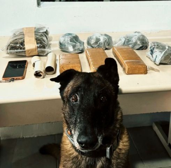 No local indicado, o cão policial Maxx realizou buscas e apontou a presença de drogas no interior do imóvel. Durante a verificação, os policiais localizaram aproximadamente 3,240 quilos de maconha, incluindo porções já fracionadas e embaladas para a venda, além de cerca de 500 gramas de skank e materiais utilizados para o preparo e a comercialização dos entorpecentes.