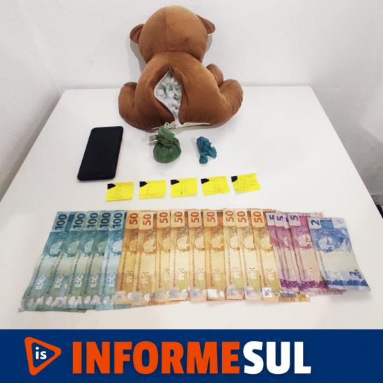 Após diligências os policiais deslocaram até a casa da mulher abordada, localizada no Bairro Ambrósio, sendo encontrado uma quantidade maior de cocaína escondida em um urso de pelúcia.