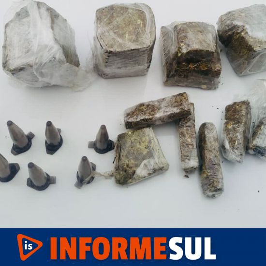 Com o apoio do cão farejador, os policiais adentraram nos prédios do local e foram localizados em diversos pontos, vários pacotes de maconha e cocaína.