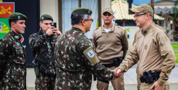 Nesta sexta-feira, 23, a Polícia Militar de Santa Catarina (PMSC) teve o privilégio de receber uma visita de inspeção do Comando da 14ª Brigada de Infantaria Motorizada, pertencente ao Exército Brasileiro (EB), em Florianópolis. Essa visita reforça a parceria entre as duas forças, com a PMSC atuando como força auxiliar e reserva do Exército.