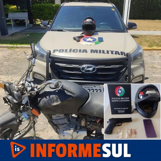 Segundo a informação ele estaria circulando com uma motocicleta roubada e estaria na divisa das cidades de Imbituba e Garopaba.