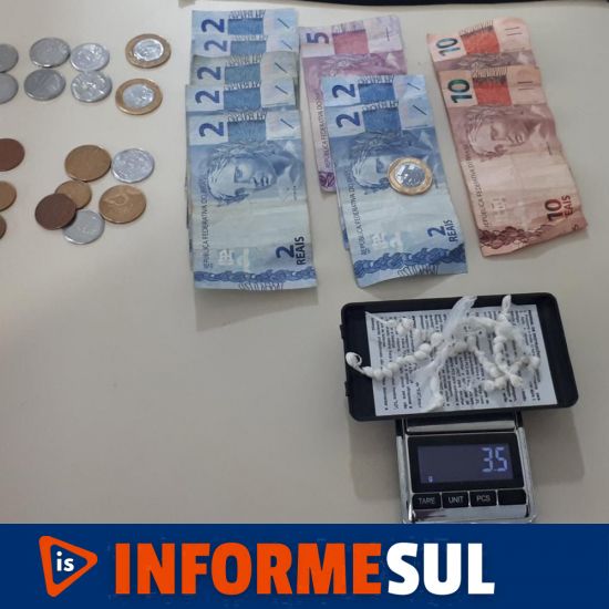 Os policiais realizaram a abordagem da suspeita, e em revista pessoal, foram localizadas em suas vestes, 59 pedras de crack, pesando juntas 3,5 gramas do entorpecente e R$ 46,55 em espécie.