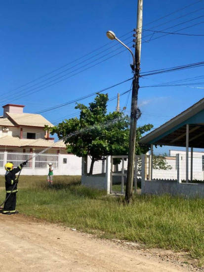 Os Bombeiros Voluntários foram acionados na manhã desta segunda-feira, dia 3, e apagaram as chamas que estavam em um poste de energia na rua Aldo Caldas Faraco, na altura do Campo Bom, em Jaguaruna. A ocorrência foi registrada, às 9h05min, com o auxílio da Celesc.