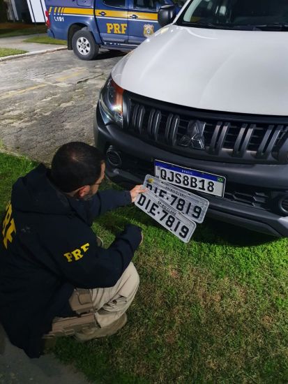 O fato foi confirmado quando os agentes encontraram, sob o banco do motorista, as placas originais da picape licenciada em Rio Claro/SP. A L200 possuía registro de furto/roubo no mesmo e já circulava clonada com placas de outro veículo de mesmas características registrado em Witmarsum/SC.
