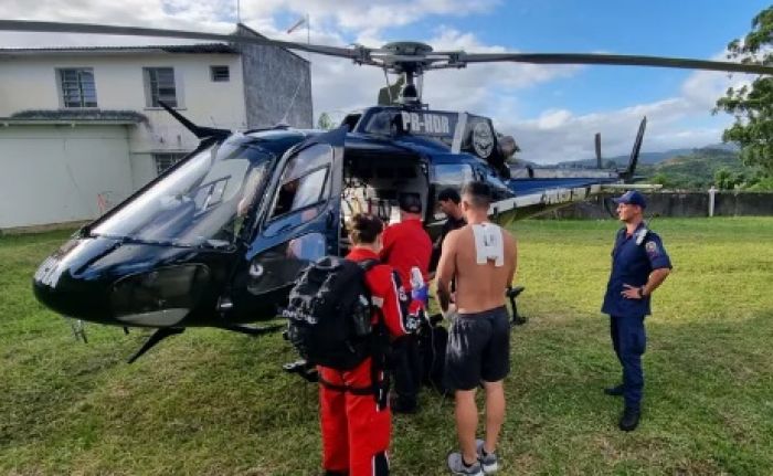 A vítima foi socorrida sem riscos de morte e encaminhada ao hospital pelas equipes do Serviço de Atendimento e Resgate Aeromédico (Saer/Sarasul) para remoção da faca.