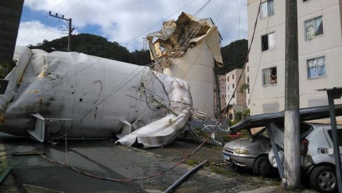 Um reservatório de água de um condomínio no bairro Progresso, em Blumenau, no Vale do Itajaí, partiu ao meio durante a manhã desta sexta-feira (7). Segundo a Defesa Civil da cidade, um homem ficou ferido após ser arrastado pela água.