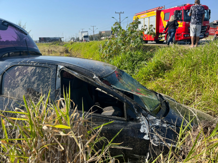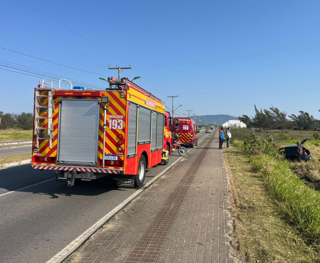 O motorista, que conduzia um Chevrolet Celta, perdeu o controle do veículo, saiu da pista e capotou. A equipe de bombeiros encontrou o condutor ainda dentro do carro, consciente, mas apresentando trauma fechado na região do crânio, tórax e membros inferiores.