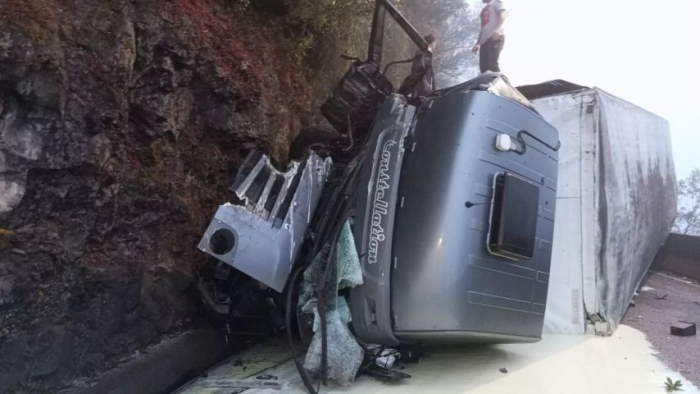 O acidente ocorreu por volta das 7h20, na altura do km 409 da rodovia. A carreta, que transportava caixas de leite condensado, tombou na pista, bloqueando completamente o trânsito na região.