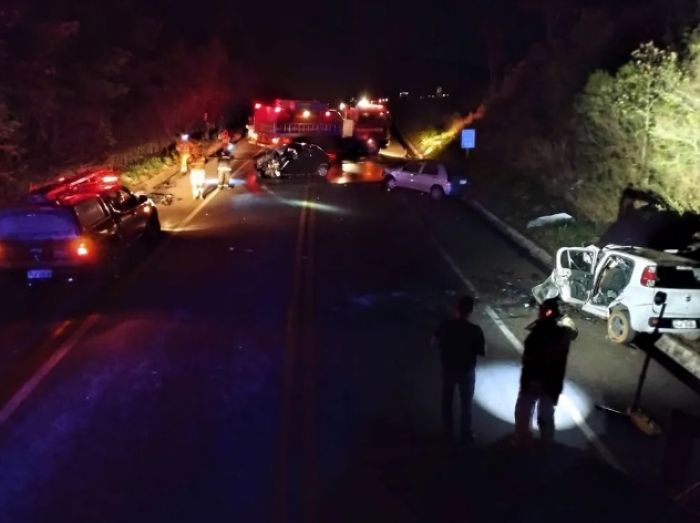 Duas crianças morreram em uma batida envolvendo quatro carros na BR-356, na altura do quilômetro 88, em Ouro Preto, na Região Central de Minas Gerais. As vítimas tinham 2 e 7 anos. Quatro adultos também morreram no local e uma pessoa, que não teve a idade divulgada, morreu durante atendimento médico. O acidente foi na noite deste domingo (16).