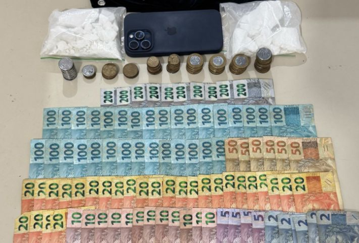 A abordagem foi realizada após a PM receber informações sobre o transporte de drogas na região. No interior do veículo, os policiais encontraram 250 gramas de cocaína, a quantia de R$ 6.144 em dinheiro e um aparelho celular.