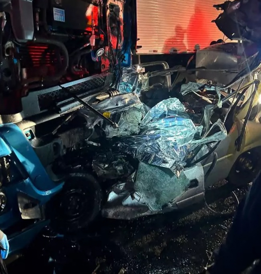 Colisão frontal na BR-116 envolvendo um carro e um caminhão; vítimas sofreram presas às ferragens e morreram no local