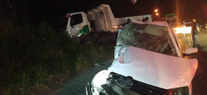 Uma mulher de 32 anos ficou gravemente ferida após uma colisão entre um veículo Volkswagen Fox e um caminhão caçamba, em Urussanga. O acidente de trânsito aconteceu na rua Giovane Baldessar, no bairro Pirago, por volta das 17h50.