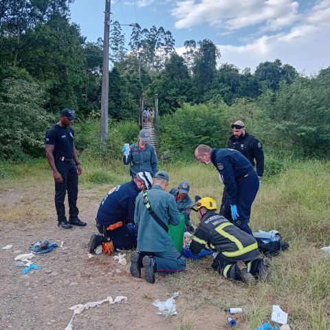 Os bombeiros realizaram os primeiros atendimentos e a contenção da vítima mais grave, transportando-a até um ponto seguro para o pouso do helicóptero. Durante a transferência, a vítima manteve comportamento agitado, dificultando o transporte seguro.