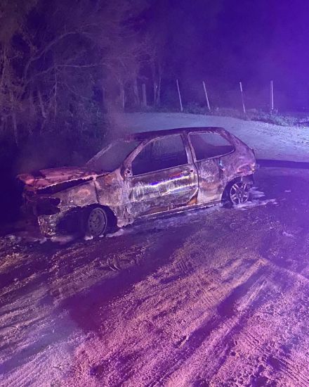 Ao chegar no local, na Estrada Geral Rio Vargedo, Treze de Maio, os bombeiros encontraram um veículo, Fiat/Palio totalmente em chamas.