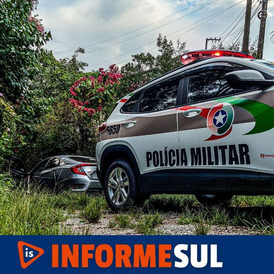 Chegando ao local denunciado, os policiais localizaram o veículo Honda/Civic abandonado próximo a mata e a motocicleta Honda/NC 700 jogada em meio ao mato.