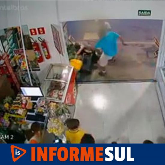 O bandido foi atingido com um chute na perna, mas conseguiu fugir do local. Segundo informações da PM (Polícia Militar), a ação foi registrada pelo circuito interno de segurança do estabelecimento. Nas imagens é possível ver que alguns clientes, sendo a maioria crianças, estavam dentro do mercado quando o criminoso chegou.