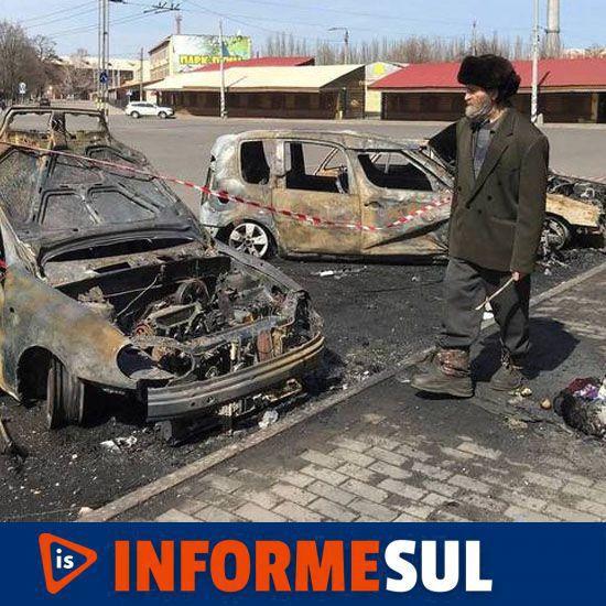 Pessoas lotaram um edifício próximo à estação de trem de Kramatorsk depois que sons de explosões foram ouvidos no local, na região leste da Ucrânia, nesta sexta-feira (8), mostra um vídeo da TV local obtido pela agência Reuters.